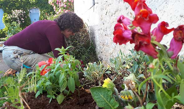 Cet après-midi, les petites mains de l’Anchentée ont récidivé. Les plates-bandes ont été désherbées et de jolies fleurs ont été plantées. Merci !