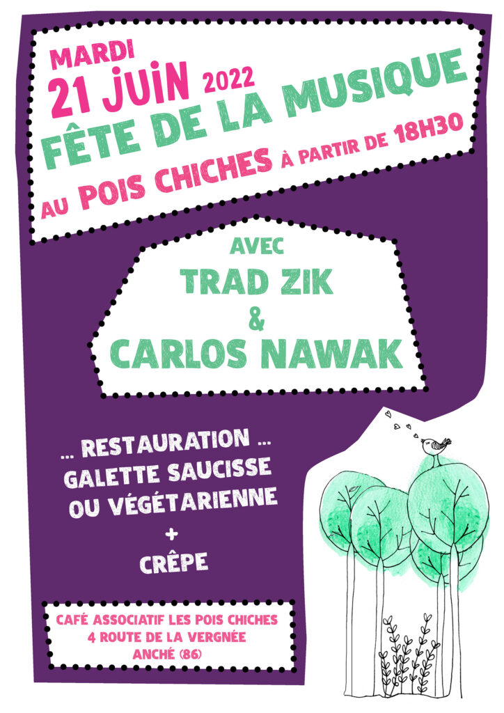 Mardi 21 juin 18h30 au POIS CHICHES